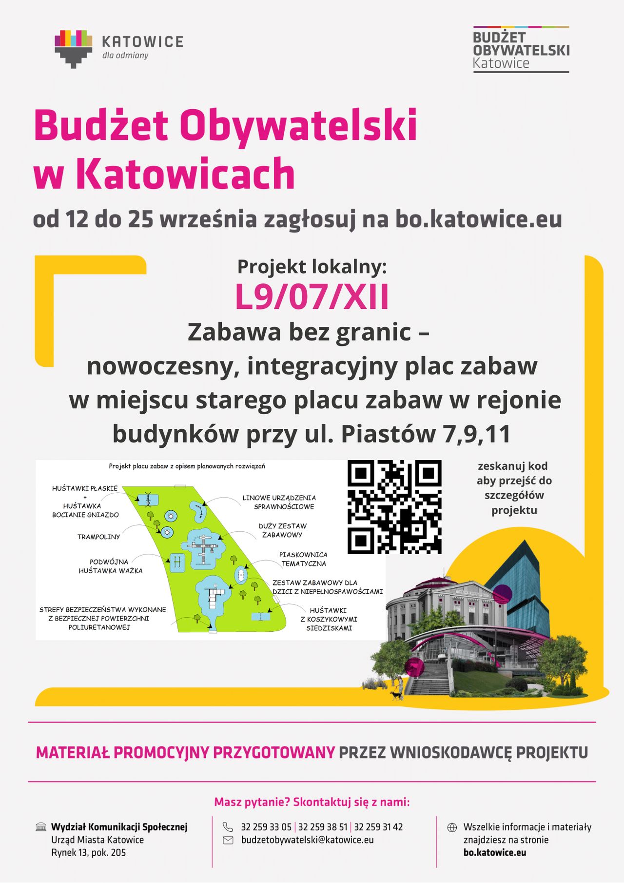 - L9/07/XII: Zabawa bez granic - nowoczesny, integracyjny plac zabaw w miejscu starego placu zabaw w rejonie budynków przy ul. Piastów 7,9,11