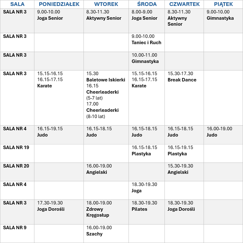 Zapisy w godzinach 12-17 osobiście w siedzibie SOK, bądź telefonicznie.