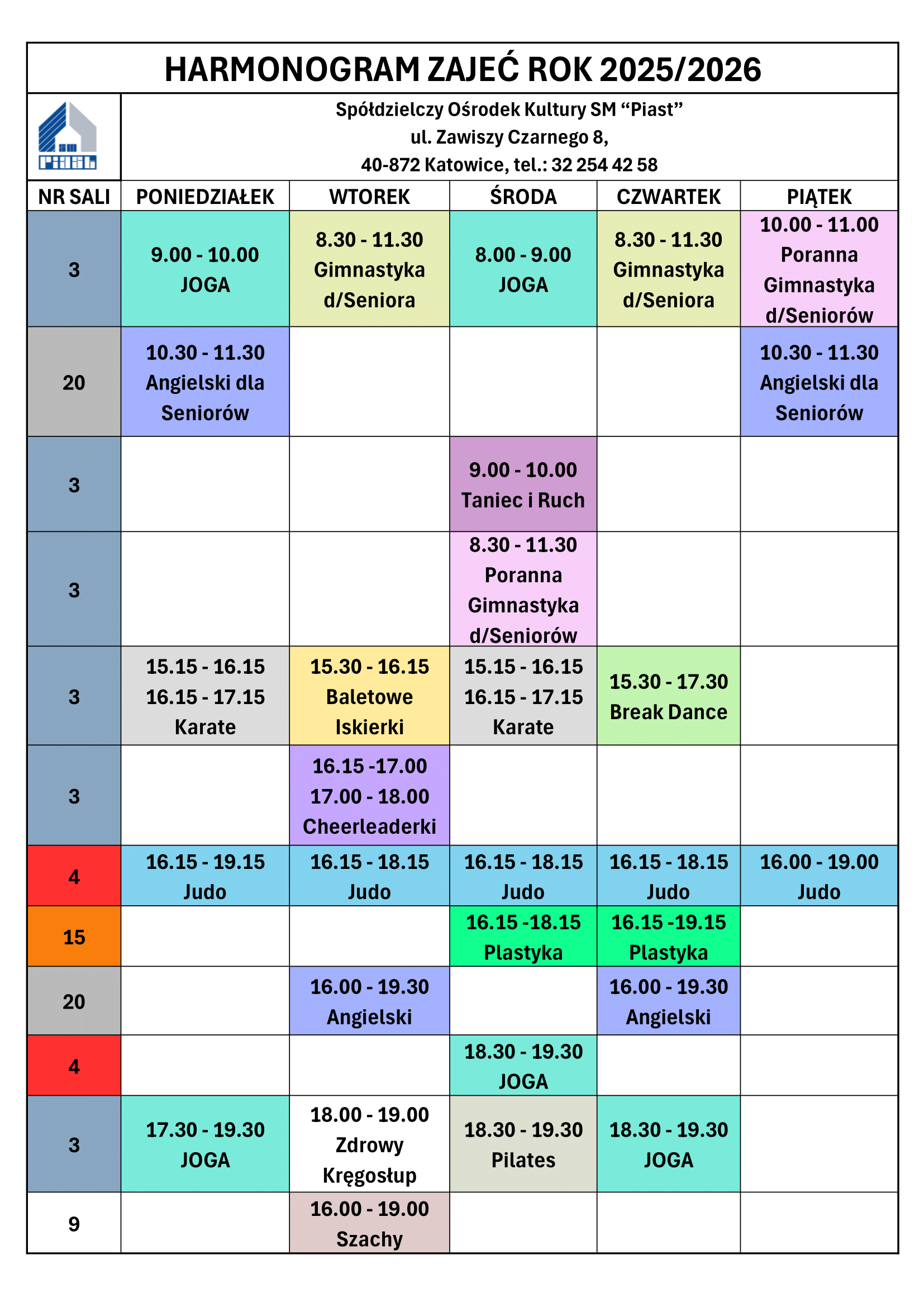 Zapisy w godzinach 12-17 osobiście w siedzibie SOK, bądź telefonicznie.